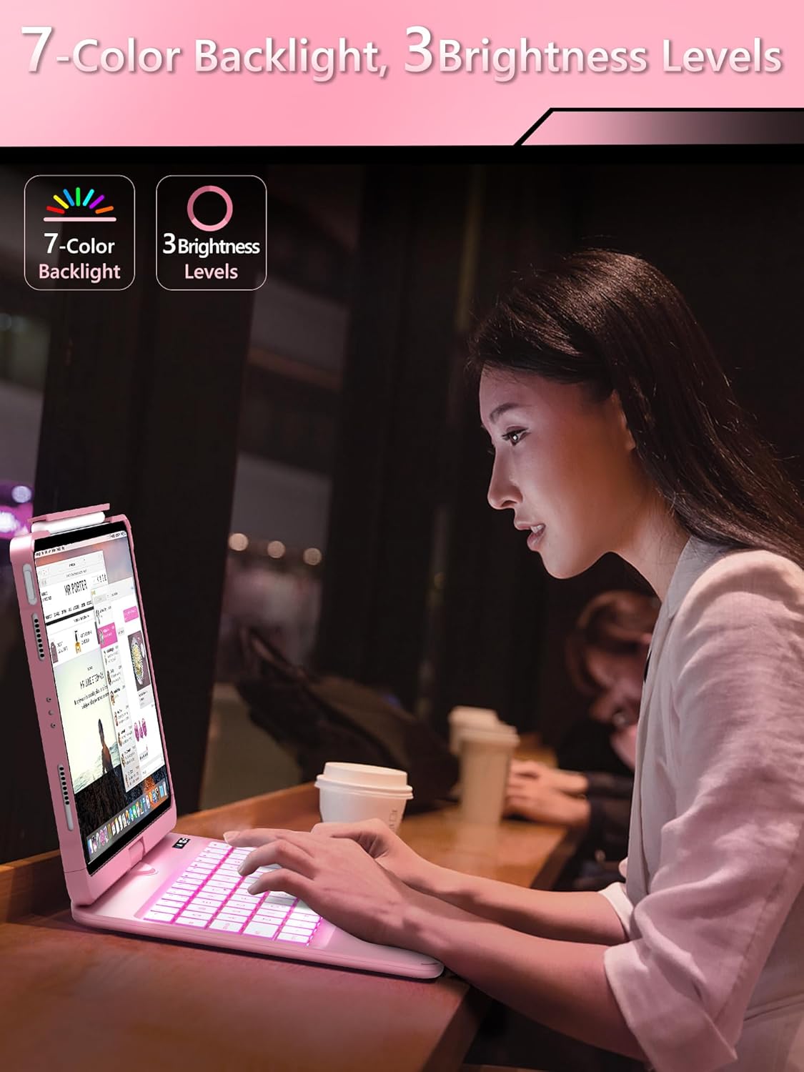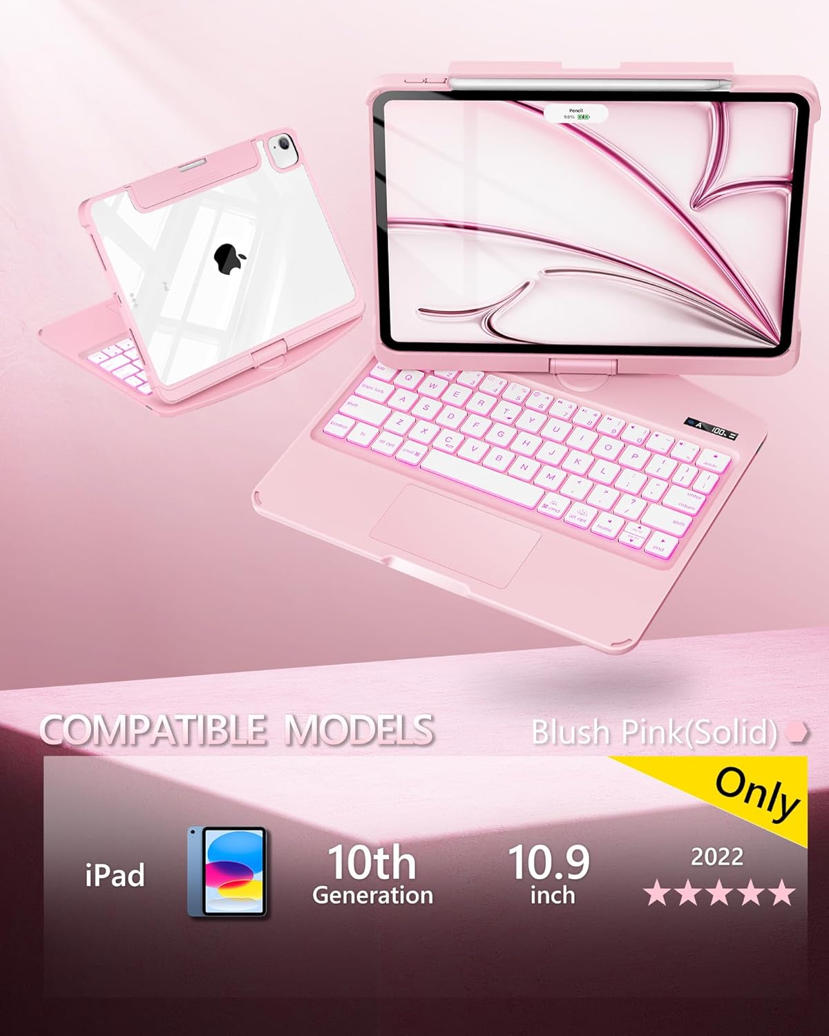 iFacemall Blush Pink Keyboard Case for iPad Pro 12.9-inch 6th/ 5th/ 4th/ 3rd Gen, Touch Case 360° Rotating with Keyboard for iPad 12.9 inch,Trackpad,7-Colors Backlit