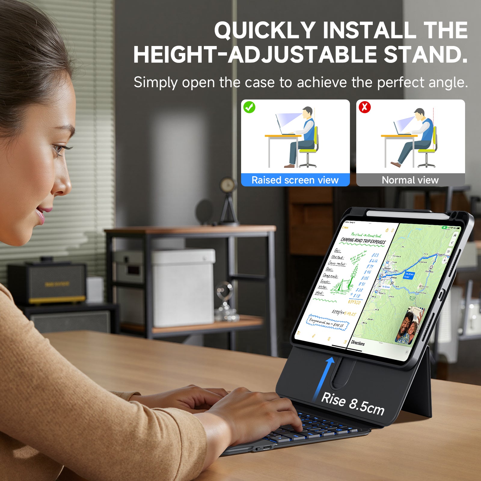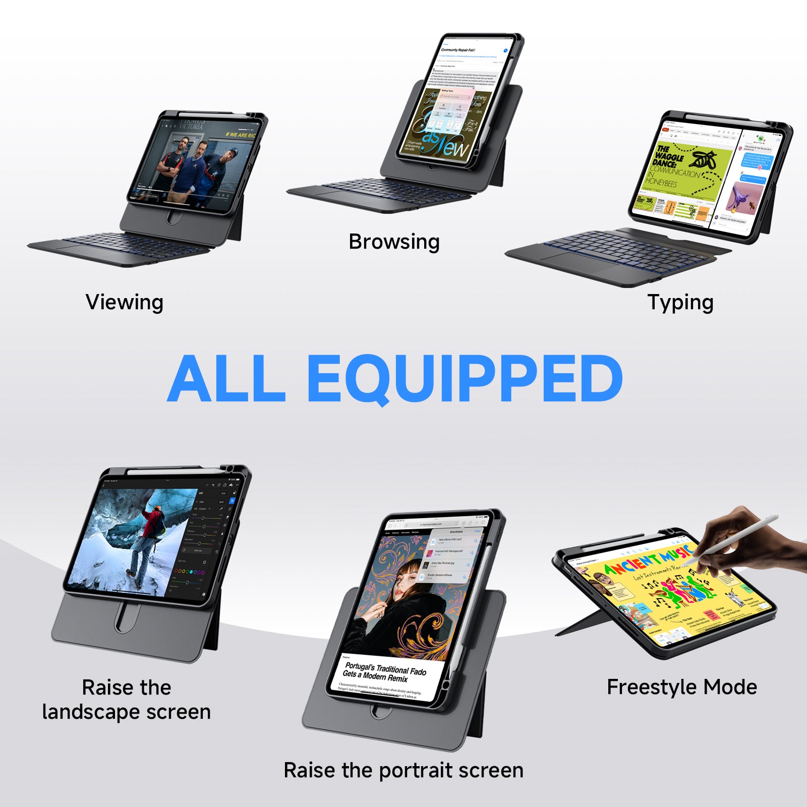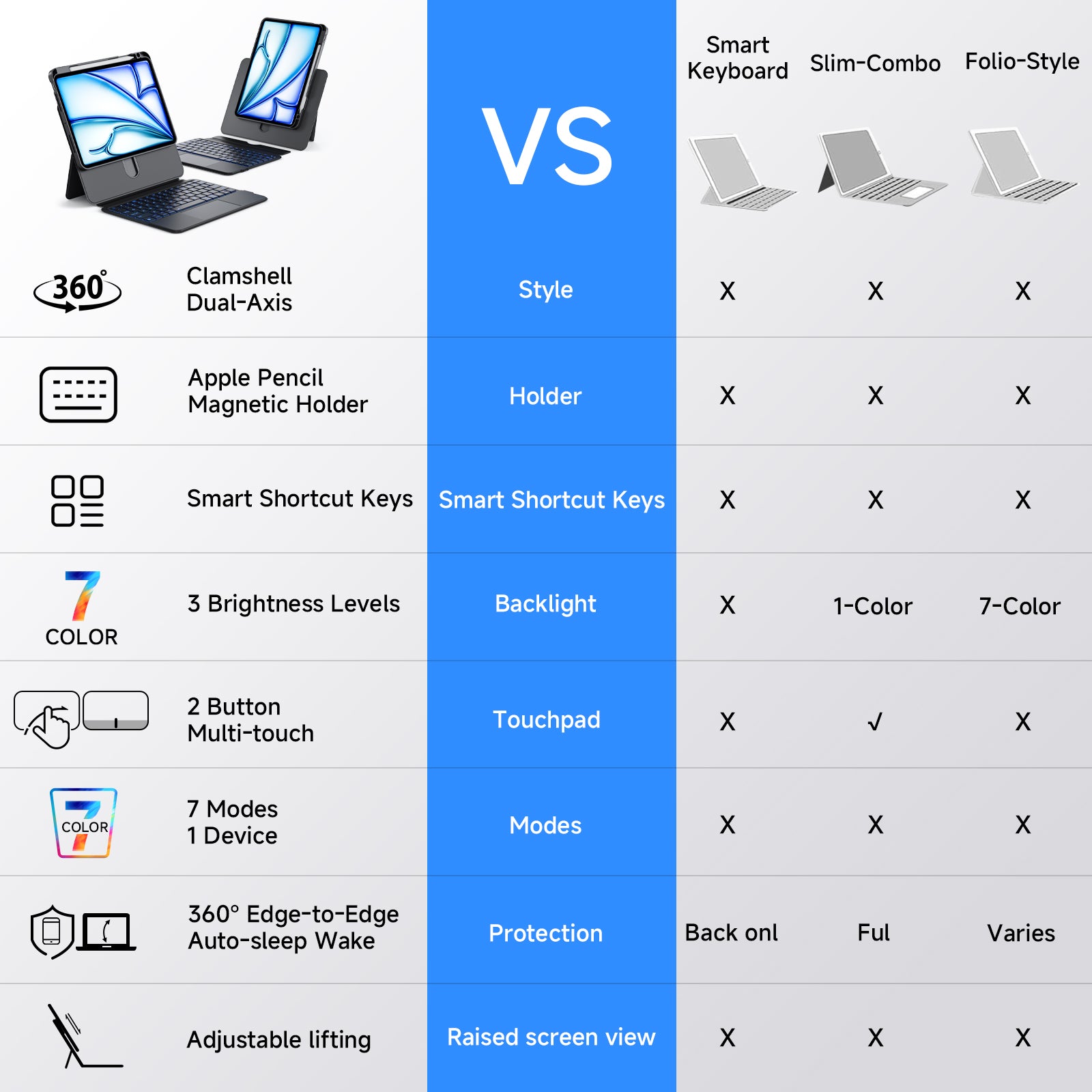 iFacemall Ultra-Light 360° Rotating Slide Rail Protective Case for iPad (7th/8th/9th Generation) 10.2-inch – Horizontal and Vertical Stand, Shockproof